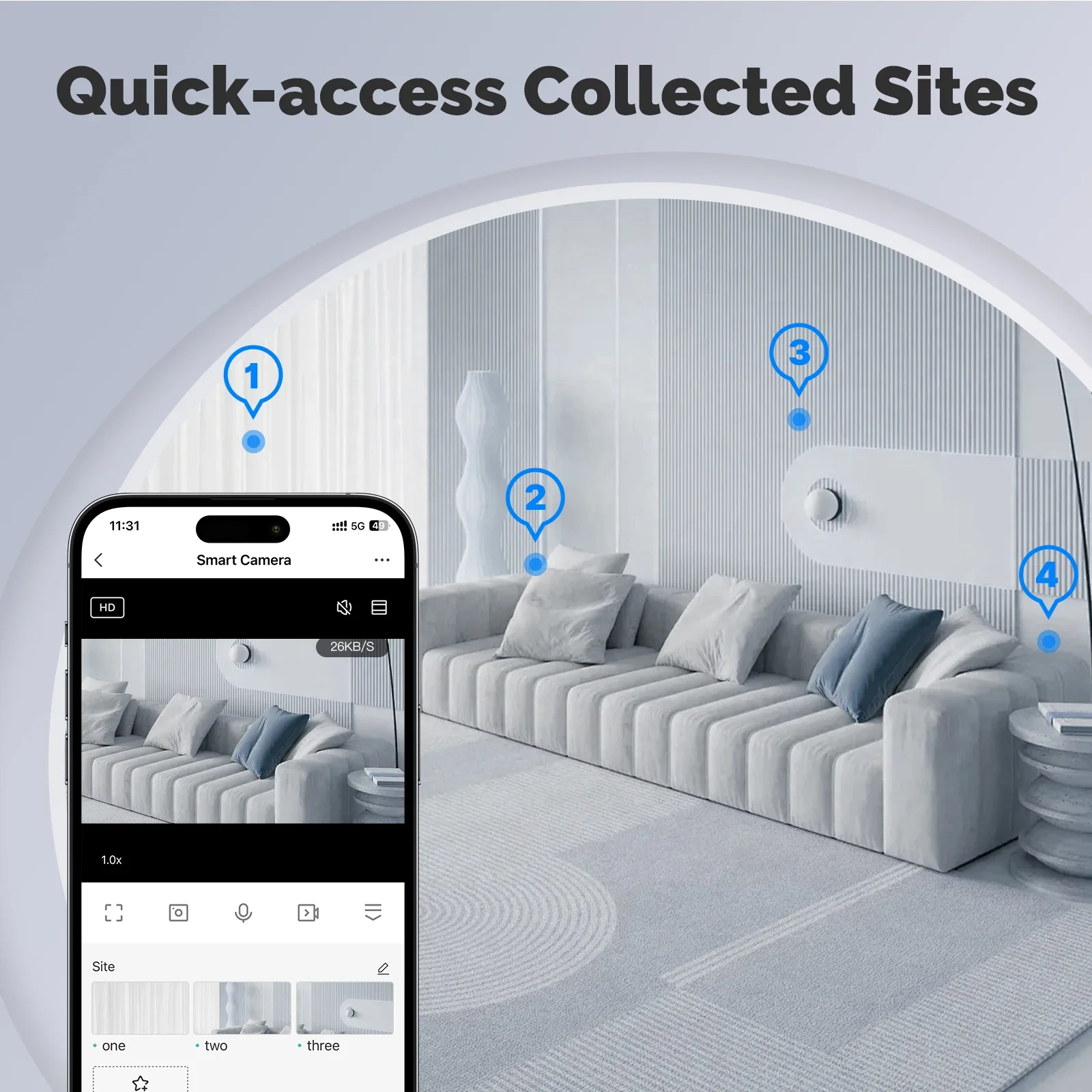 By collecting each specific angle position, you can turn the camera to the position you want to view with one click easily.