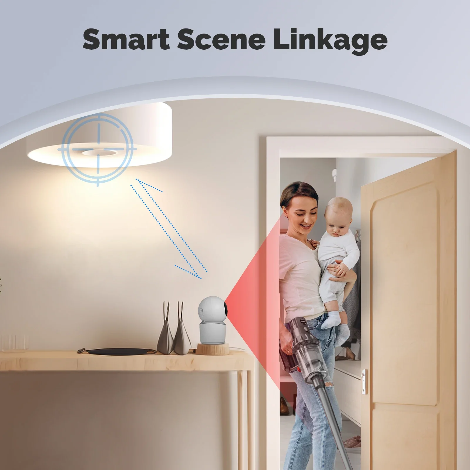 You can set up smart linkage events through Moes app. When the camera lens captures the movement of a person, the smart light at the door of your home will light up automatically, allowing intelligence to serve your life and free your hands.