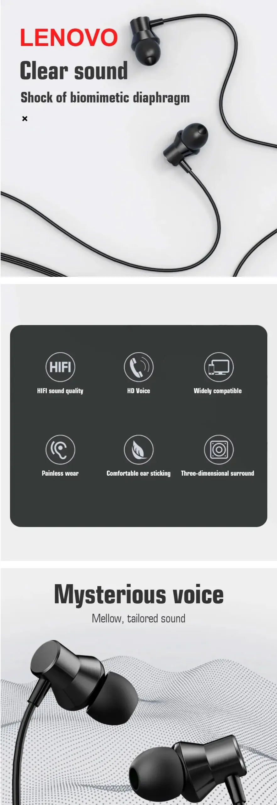 Now Experience Hi-Fi Surround Output From Your Favourite Earphone, The Industry Leading Dynamic Driver Units Harmonize The Sound And Take It Into The Next Level. Lenovo In-Ear Metal Earphone Equipped With Snug Fit Metal Ear Case And Premium Looking Cable Guarantee The Supreme Comfort And Prolonged Music Play